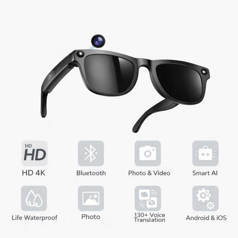 Upplev framtiden med smarta glasögon som kombinerar HD kamera, AI-assistent och realtidsöversättning i en stilren design. Fånga livet handsfree och var ständigt uppkopplad med digital superkraft direkt på näsan.